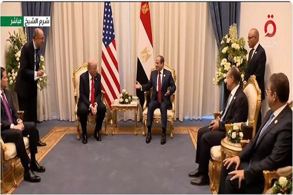جاء ذلك خلال لقاء الرئيس السيسي و الأمريكي ، وذلك قبل انطلاق القمة الدولية بمدينة شرم الشيخ .