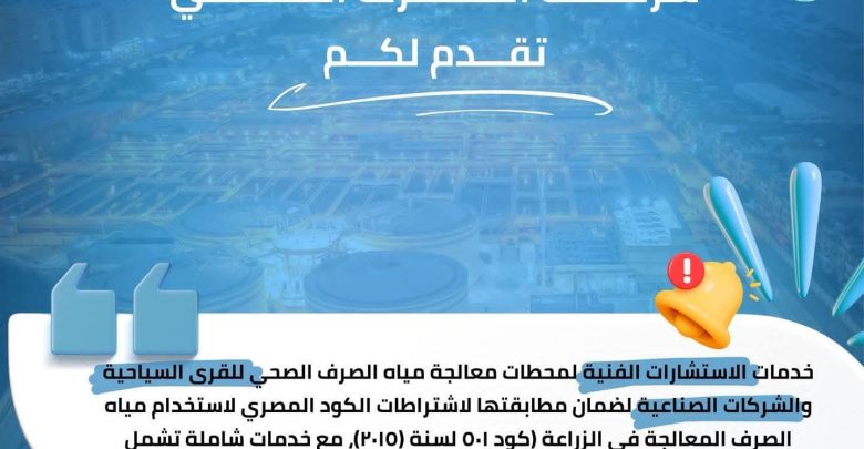 أطلقت شركة الصرف الصحي بالإسكندرية ،مجموعة جديدة من الخدمات الاستشارية الفنية لمحطات معالجة مياه الصرف الصحي ،، بالقرى السياحية والشركات الصناعية.