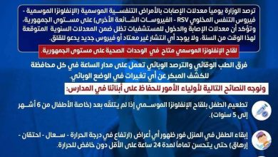 كتبت: منة خالد أكدت وزارة الصحة والسكان استقرار الوضع الوبائي للفيروسات التنفسية في مصر، موضحة أن معدلات الإصابة الحالية تقع…